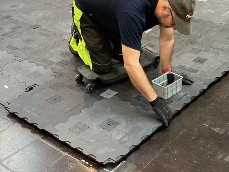 Das OCTAeco floor System bietet eine schnelle und einfache Verlegung. Es können damit Kabel überdeckt und Unebenheiten im Boden ausgeglichen werden. Dazu ist es mit 20.000 kg /m² sehr belastbar. Sie können die Montage selber durchführen oder unseren Auf- und Abbauservice nutzen. Anlieferung und Abholung organisieren wir ebenfalls für Sie.